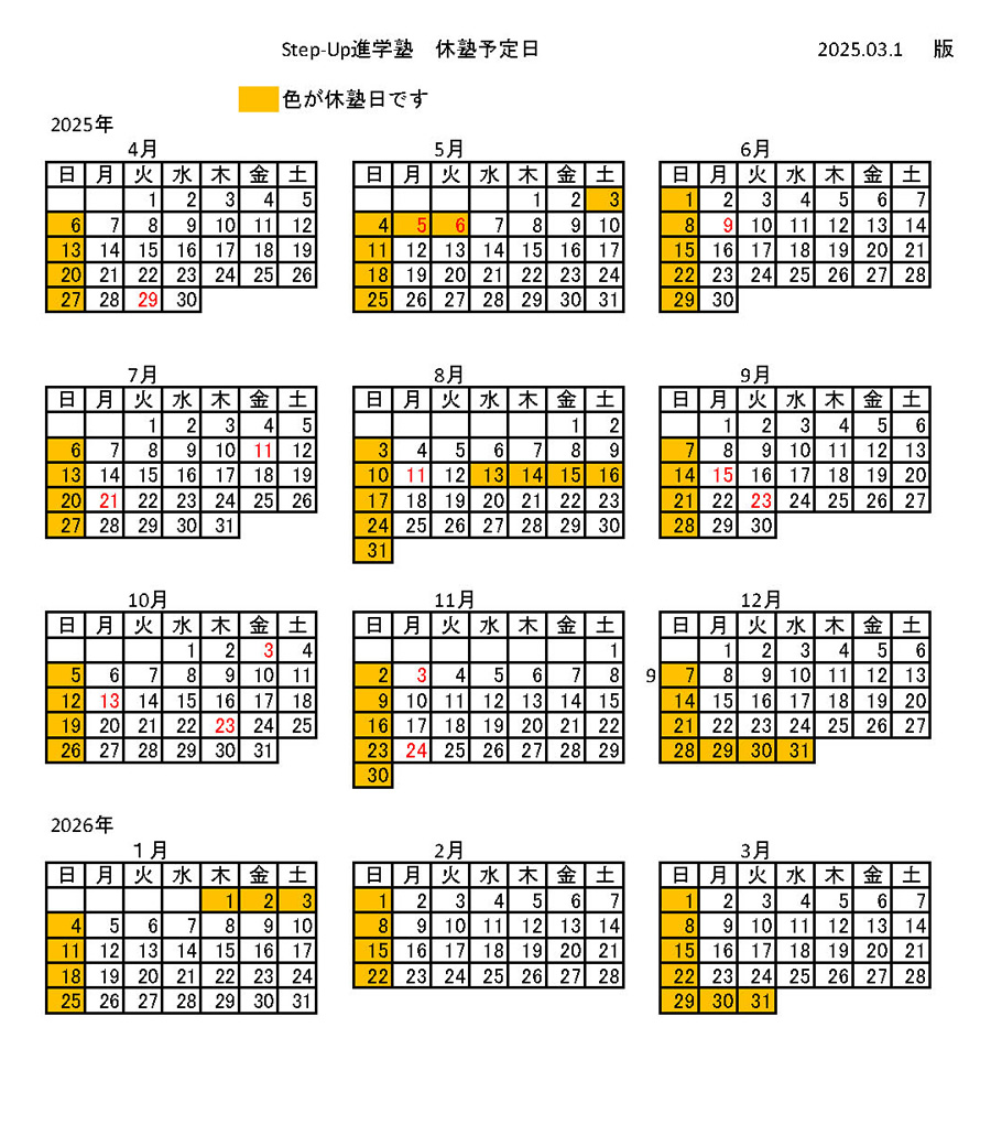 7.中学3年生、高校3年生は受験対応です。